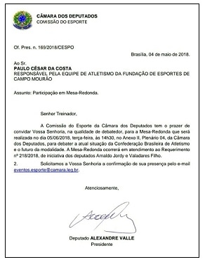 O treinador foi convidado para uma mesa-redonda sobre a situação da Federação Brasileira de Atletismo e o futuro da modalidade.