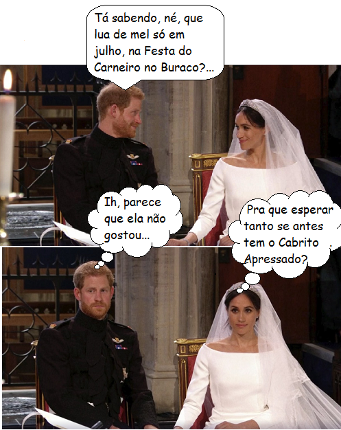 O casamento do príncipe Harry com Meghan Markle foi o assunto do mundo neste fim de semana. Boca Santa deu um jeitinho e entrou na onda. Em tempo: A Festa do Carneiro no Buraco, em Campo Mourão, será de 4 a 8 de julho, com o prato típico servido dia 8. O Cabrito Apressado, de Corumbataí do Sul, começa nesta sexta-feira e o prato típico será servido no domingo..