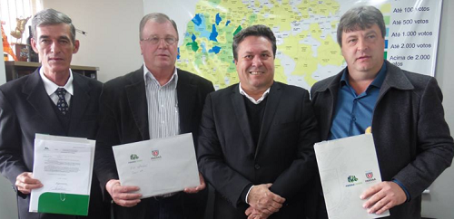 No clic, junto com Nunes, estão os prefeitos José Carlos Gomes (Nova Cantu), Ricardo Radomski (Mamborê) e Mauro Slongo (Luiziana).