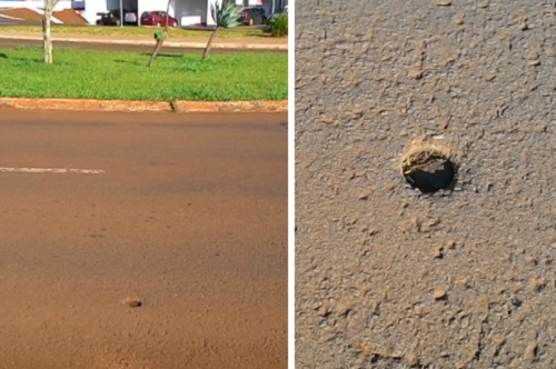"Aparentemente a fiscalização de asfalto tão polêmica na atualidade já foi feita no passado. Isso porque tem um buraco bem similar na av. Capitão Índio Bandeira, na altura do posto do Muffato, que aparenta ser bem antigo. Mas pelo visto não fecharam".