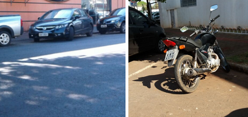 2) Moto ocupa lugar de um carro em frente à Caixa Econômica