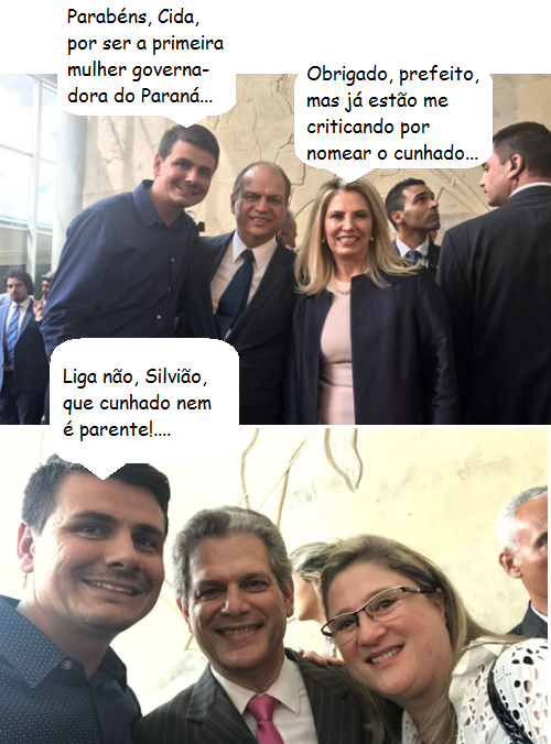 Prefeitos da região participaram, sexta-feira, da posse de Cida Borghetti como governadora do Paraná. Um deles foi Rafael Bolacha (Moreira Sales), que fez fotos ao lado de Cida e do marido-deputado-ex-ministro Ricardo Barros e do novo secretário de Estado do Desenvolvimento Urbano, Silvio Barros. A prefeita de Roncador, Marília Gonçalves, também aparece no segundo clic.