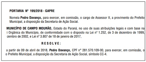 Detalhe: o CC-4 nomeado é Pedro Davanço.
