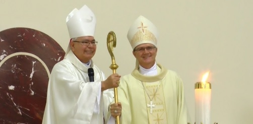 D. Bruno Versari, bispo de Campo Mourão (à dir.), sobre o primeiro ano à frente da diocese e a ajuda do bispo emérito d. Javeir Paredes (à esq.), em entrevista ao jornal "Servindo" deste mês.