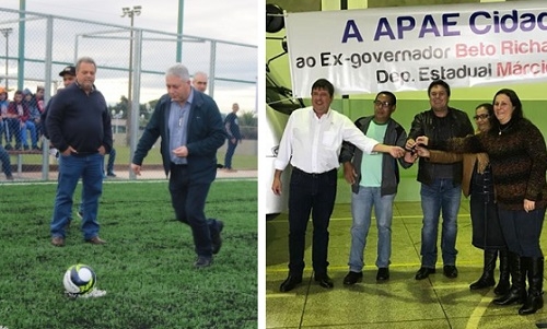 Os dois deputados estaduais de Campo Mourão cumpriram agendas fora da região nesta quinta-feira. Douglas Fabricio foi a Xambrê para a inauguração da arena multiuso. Márcio Nunes foi a Cidade Gaúcha. Participou da entrega de ônibus para a Apae e anunciou mais R$ 100 mil para reforma da associação local.