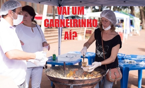 Domingo diferente na Feira da Economia Criativa, na praça São José. Teve carneiro no buraco. O prato típico de Campo Mourão pode ser degustado de graça por quem passou pelo local. A iguaria foi preparada para divulgar a 27.a Festa Nacional do Carneiro no Buraco, que será realizada de 4 a 8 de julho.