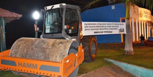Farol - A prefeitura fez solenidade para entrega de rolo compactador, conseguido através de emenda de R$ 320 mil da deputada federal Christiane Ayred. A prefeita Ângela Kraus lembrou que a parlamentar não conhecia Farol, mas atendeu o pedido dela.