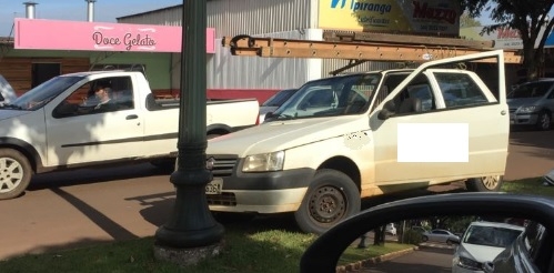 "Isso pode? Carro para em cima do canteiro central na av. Manoel Mendes de Camargo. E ainda com cone obstruindo a passagem de veículos".