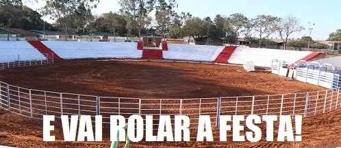 A arena de rodeio ganhou pintura nova nas arquibancadas.