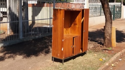 Armário/estante - Vende-se. Em "razoável" estado de conservação. Na cor marrom. Pelo menos fica em pé. Interessados procurar na av. Goioerê, perto do supermercado Carreira.