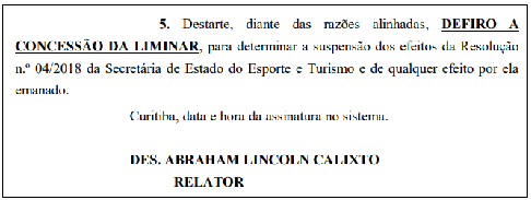Liminar concedida nesta quarta-feira suspendeu o Programa Estadual de Fomento e Incentivo ao Esporte.