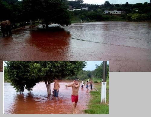 "Chuva transbordou o Lago Municipal de Iretama. A piazada gostou, principalmente para pegar os peixes".