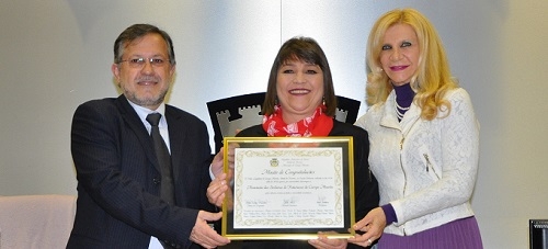 Sessão da Câmara rapidinha nesta terça-feira em Campo Mourão, mas com plenário lotado. O públicou foi prestigiar a entrega da moção para a Associação das Senhoras de Rotarianos. A presidente da ASR, Maria Eleni Pereira Martins, recebeu a homenagem das mãos da vereadora autora, Nelita Piacentini, e do prefeito Tauillo Tezelli.