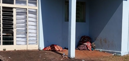 Nesta segunda-feira, sem-teto dorme em prédio público na rua Rocha Pombo, centro de Campo Mourão.