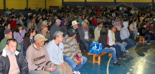 Goioerê - Moradores da Vila Candeias, Galileia e distrito de Jaracaitá lotaram o ginásio do jardim Curitiba. Motivo? Foram participar de reunião que tratou sobre a regularização fundiária. Mais de 700 famílias terão a escritura definitiva através de parceria entre prefeitura e Cohapar.