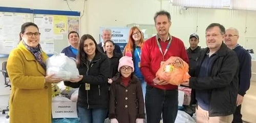 1) A equipe dos Correios de Campo Mourão repassou à prefeitura cerca de mil peças de agasalhos arrecadadas em campanha. O repasse foi feito ao prefeito Tauillo Tezelli. Também foram repassados 280.peças para o Lar dos Velhinhos Frederico Ozanan