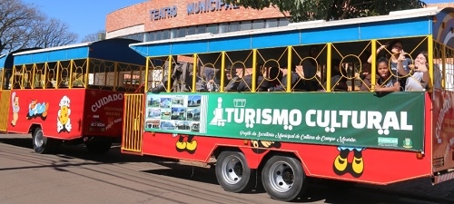 Toda segunda-feira o trenzinho leva alunos da 4ª série e idosos do Cras para conhecer espaços culturais da cidade.