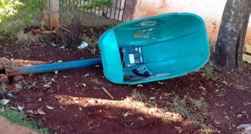 Orelhão amanhece caído, neste domingo, no conjunto Condor.