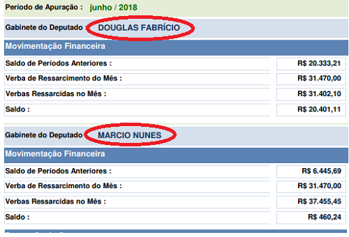 Da região, Douglas Fabrício teve R$ 31,4 mil e Márcio Nunes R$ 37,4 mil.