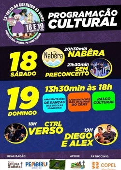 A prefeitura de Peabiru divulgou a programação da 23ª Festa do Carneiro ao Vinho.