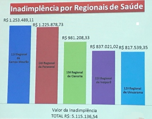 ...a região de Campo Mourão, com R$ 1,253 milhão atrasados.