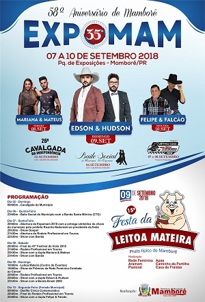 Esses serão os shows da 35ª Expomam, que acontece em setembro.