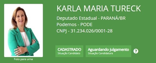 Karla Tureck, filha do ex-prefeito Nelson Tureck, foi registrada como candidata a deputada estadual pelo Podemos.