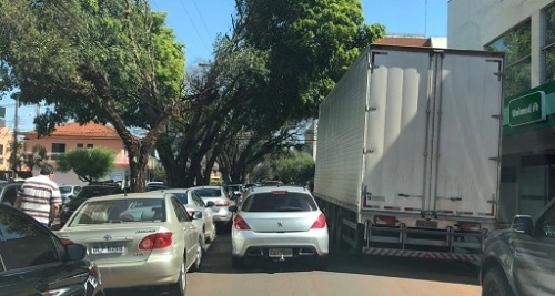 Nesta terça-feira, caminhão estacionado na av. José Custódio de Oliveira, fora do horário de carga e descarga.
