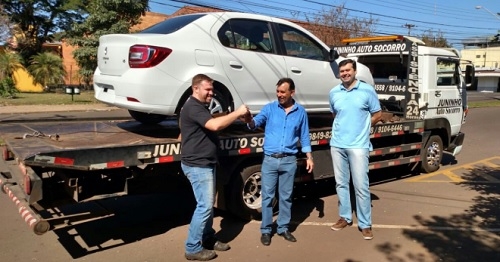 O que é isso? O carro do diretor do câmpus da Unespar, João Marcos Avelar, pifou e foi guinchado? Nã-nani-nanã! É o Renault Logan 0 km que chegou para a instituição. Também chegaram 10 computadores, três notebooks e 22 câmeras de um sistema de monitoramento. Um lote de livros chega nos próximos dias. Tudo adquirido com recursos do FNDE via emenda do deputado Rubens Bueno.