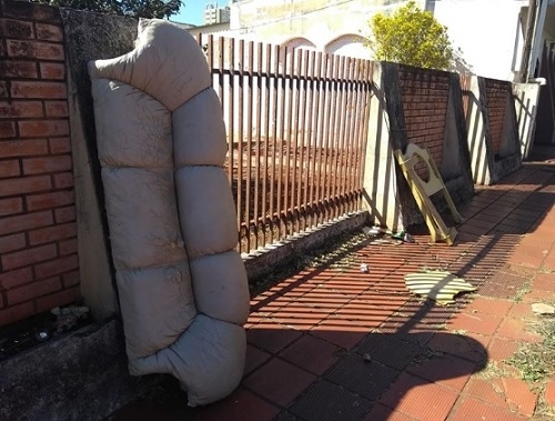 Tem pedaço de sofá? Tem. Tem cabeceira de cama de solteiro? Tem. Onde? Rua Interventor Manoel Ribas, centro de Campo Mourão.