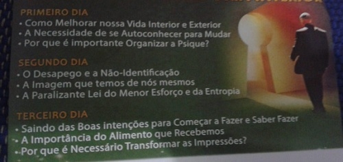 1) "Resgatando a sabedoria interior". Esse é o nome do curso de meditação que começa nesta sexta-feira (20h) em Campo Mourão. Serão três dias - sempre às sextas - de curso. É gratuito. Mais informações: (44) 9 9974-3966 ou 3523-0012.