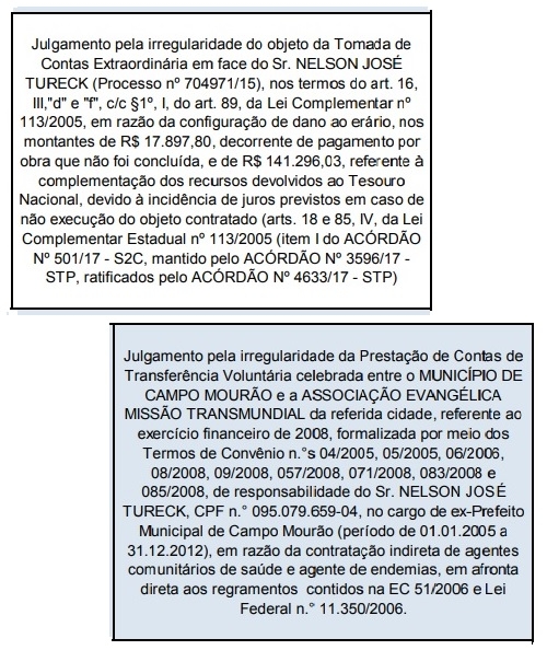No caso de Tureck não são contas anuais reprovadas, que passam pela Câmara, mas convênios.