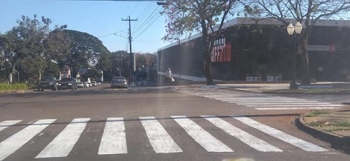 Se na hora de inaugurar o supemercado Condor faltou a prefeitura dar uma maquiada no entorno, na reinauguração do Muffato parece que o cuidado foi tomado. Pelo menos as faixas de pedestres foram pintadas em frente ao mercado. Foi só lá, mas o público que foi ao evento de reinauguração tinha faixa de segurança para usar.