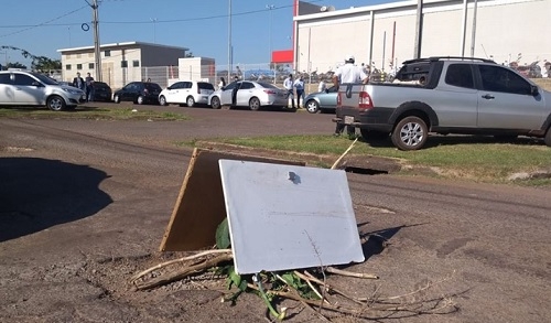 Faltou uma maquiada da prefeitura no entorno do Condor. Na hora da inauguração, com muita gente no local, a rua Quinto Slomp, usada como acesso, tinha um buraco sinalizado com galhos de árvores e portas de ármário.