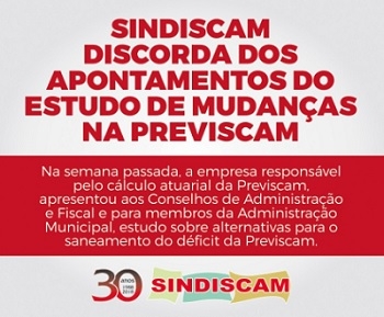 O Sindicato dos Servidores Municipais não concorda com as sugestões de mudanças para a Previscam.