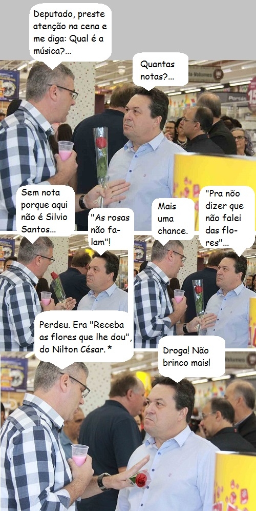 Os cliques são desta terça-feira, na inauguração do Condor. O vereador Edilson Martins conversa com o deputado Márcio Nunes segurando a rosa vermelha que ganhou na entrada do supermercado.