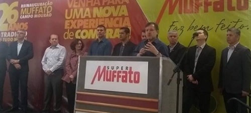 Aconteceu nesta sexta-feira a reinauguração do supermercado Muffato de Campo Mourão. A área de vendas foi ampliada em 30% e o estacionamento ganhou novo pavimento com 300 vagas cobertas. O investimento foi de R$ 20 milhões. "Em breve teremos wi-fi grátis", anunciou o diretor do grupo, Everton Muffato. O mercado atua em Campo Mourão desde abril de 1992.