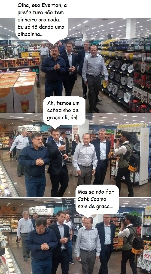 Os cliques são desta sexta-feira, na reinauguração do Super Muffato. O ditetor do grupo, Everton Muffato, levou o prefeito Tauillo Tezelli e o presidente da Coamo, José Aroldo Gallassini, para conferir as novas instalações. O vice-presidente da Câmara, Edilson Martins, também acompanhou.