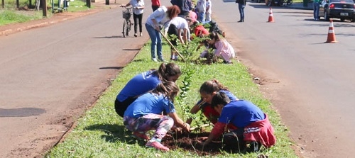 A gente já chamou Campo Mourão de "capital da motosserra", tantas são as árvores cortadas pelas ruas da cidade. Nesta sexta-feira, no entanto, Dia da Árvore, cerca de 50 mudas foram plantadas na av. Armelindo Trombini. A ação envolveu alunos do Caic. O prefeito Tauillo Tezelli acompanhou.