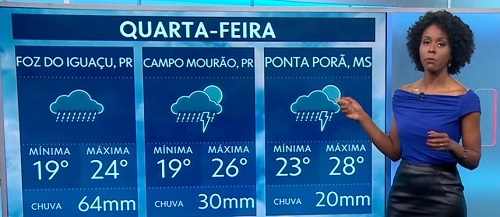 Vai chover no Brasil inteiro nesta quarta-feira. Para o Centro-Oeste do Paraná há previsão de temporal mais intenso. Tanto que Campo Mourão mereceu citação no Jornal Nacional (Globo) de terça-feira. "Campo Mourão pode ter um dia bem molhado", informou a Maju. Olha ali o gráfico falando em 30 milímetros de chuva para a cidade.