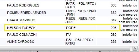 O ex-prefeito Nelson Tureck desistiu da disputa para deputado estadual, mas obteve 295 votos.