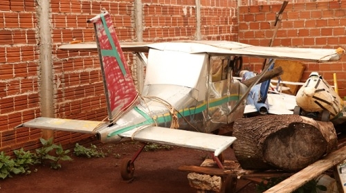 Sim, é um avião. Um avião de brinquedo, mas é um avião. Foi feito por morador do conjunto Fortunato Perdoncini e está guardado no hangar, ops, quintal de uma das casas do bairro. Foto: Irineu Ricardo.