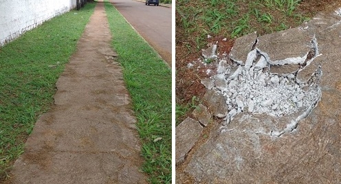 "E o povo destruindo o patrimônio público: calçada do Cemitério Municipal. Máquina pesada em cima do canteiro".