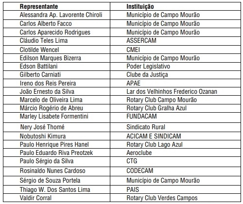 São 22 membros, sendo sete da prefeitura (veja quadro acima).