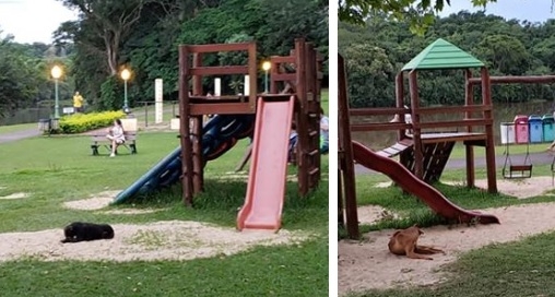 "Colocaram areia no parquinho das crianças do Parque do Lago. Legal. Mas e os cachorros fazendo uso dessa areia? Precisamos urgentemente tirá-los do interior do parque ou então cercar o parquinho. Fica a dica. Só para constar... Adoro cachorros (tenho três), mas não dá para colocar a saúde das crianças em risco".