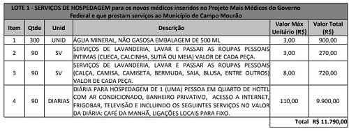 O edital previa o valor máximo de R$ 11,7 mil por 90 diárias.