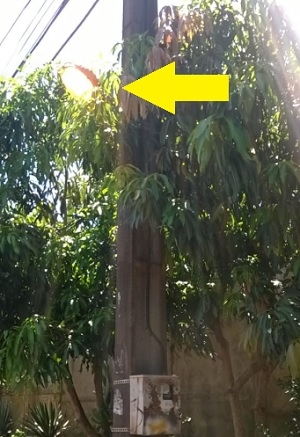 "Rua Guarani, fundos do colégio Vinícius de Moraes, no conjunto Cohapar. Luz que se apaga, não se paga".