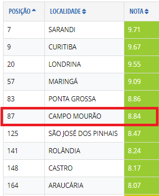 Com nota 8,84, o município ficou em sexto lugar no Paraná e em 87º no Brasil.