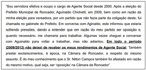 Em depoimento, eles disseram que foram "dispensados" por serem de oposição ao então prefeito Aguinaldo Chichetti.
