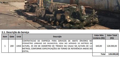 O município quer contratar empresa para extração de "árvores com risco de queda".